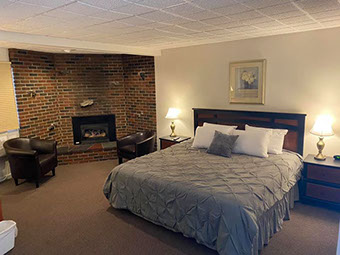 Single rooms with queen bed, Doubles with queen or full bed, Jacuzzi & fireplace suites